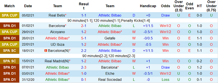 Thành tích này kém ấn tượng hơn hẳn khi Bilbao thi đấu Cúp. Họ giành Siêu Cúp Tây Ban Nha 2020 sau khi đánh bại cả Real Madrid lẫn Barcelona và đã vào tới bán kết Cúp Nhà vua mùa 2020/21.