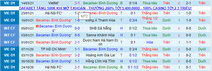 + Thống kê 10 trận gần nhất của Bình Dương