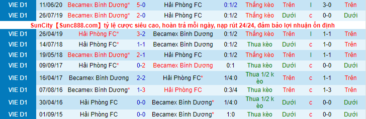 + Lịch sử đối đầu Bình Dương vs Hải Phòng