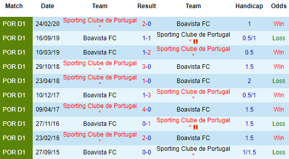 + Lịch sử đối đầu Boavista vs Sporting Lisbon