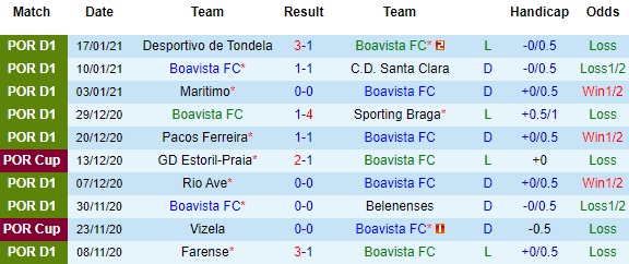 + Thống kê 10 trận gần nhất của Boavista