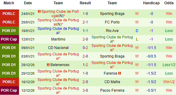 + Thống kê 10 trận gần nhất của Sporting Lisbon