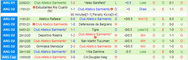 + Thống kê 10 trận gần nhất của Sarmiento