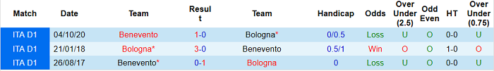 Phong độ và thành tích đối đầu Bologna - Benevento