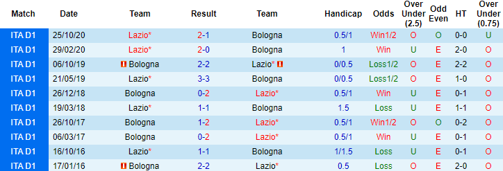 Trong khi đó Lazio vẫn không có được phong độ tốt ở các chuyến làm khách. 7 trận xa nhà gần đây, Lazio để mất điểm tới 5 lần với 4 thất bại và 2 trận hoà, thua 5 trận theo kèo châu Á. Bất lợi về lịch thi đấu vì vừa phải đá Champions League hồi giữa tuần (thua Bayern Munich 1-4), Lazio khó cải thiện thành tích trên sân của Bologna.
