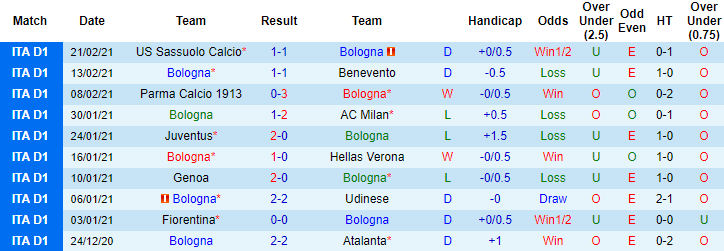 Thế nhưng ở trận đối đầu sắp tới, Bologna lại mang đến nhiều hứa hẹn vào khả năng thoát thua. Đội chủ nhà có được lực lượng ổn định và lịch thi đấu thuận lợi, tạo ấn tượng tốt bằng 3 trận bất bại liên tiếp gần đây. Trên sân nhà, Bologna không thua 4 trên 5 trận vừa qua (thắng 1, hoà 3).