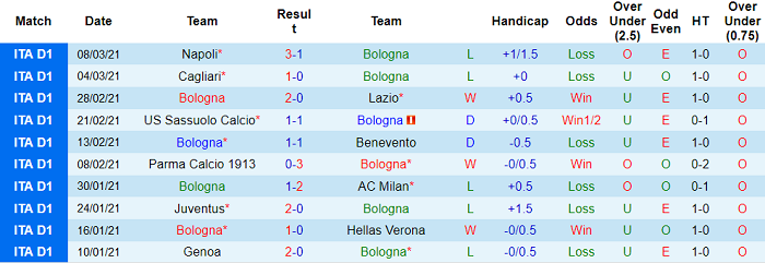 Hai thất bại có phần ‘cay đắng’ trước Cagliari và Napoli khiến đà ‘khởi sắc’ của Bologna bị chững lại. Họ rơi xuống vị trí thứ 12 trên bảng xếp hạng Serie A 2020/21 sau vòng 26.
