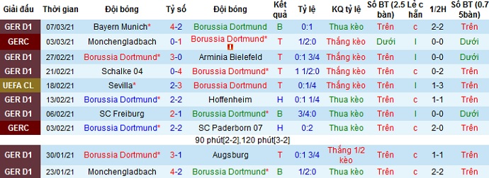 + Thống kê 10 trận gần nhất của Borussia Dortmund