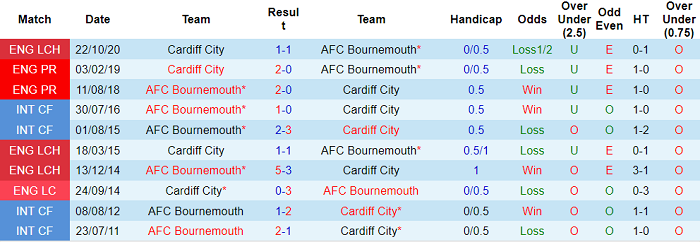 Tỷ lệ kèo Bournemouth vs Cardiff