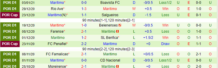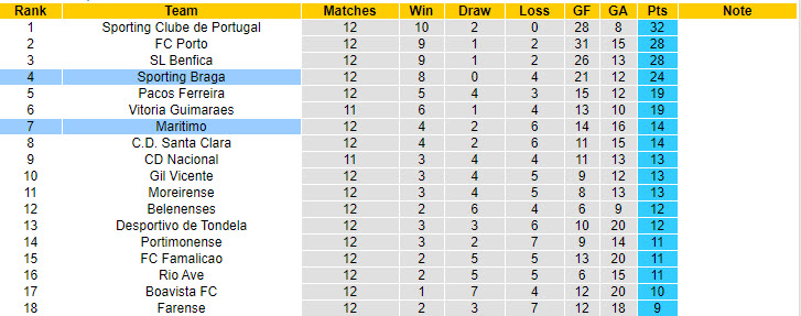 Trái ngược với đối thủ, Maritimo thi đấu thất thường khi thắng 2 trận, còn lại là 4 trận hoà và thua tới 5 lần trong số 11 trận vừa qua tại mọi đấu trường tham dự. Nhắc thêm, họ từng thua tới 4 và chỉ thắng đúng 1 lần trong số 7 trận gần nhất chạm mặt Braga.