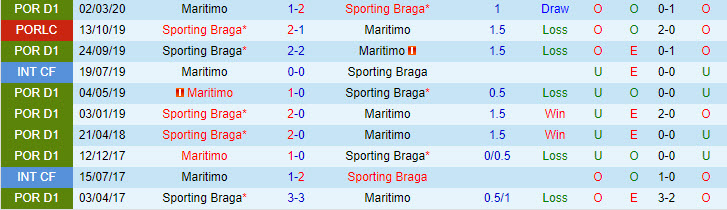Trước khi để thua trên sân của Sporting Lisbon, Braga đang có chuỗi 5 trận thắng kèo liên tiếp tại mọi đấu trường tham dự. Trong đó, có 3 trận thắng kèo trên sân nhà. Đối lập với phong độ kèo chói sáng của đội chủ nhà, Maritimo khiến nhiều nhà đầu tư phải dè chừng khi thua kèo 7, hoà 1 và chỉ thắng 3 kèo ở 11 trận gần nhất. Chọn Braga.