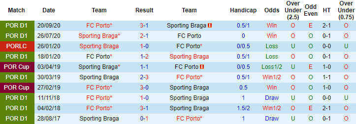 Porto có thành tích đối đầu vượt trội so với Braga. 45 lần chạm trán Braga trước đây tính trên mọi đấu trường, Porto thắng 26, hòa 10 và chỉ để thua 9 trận. Tuy nhiên 2 lần gần đây làm khách của Braga, Porto đều phải tay trắng rời cuộc chơi. Lần tái đấu sắp tới, Porto tiếp tục không được tin tưởng vào khả năng có được kết quả thuận lợi.