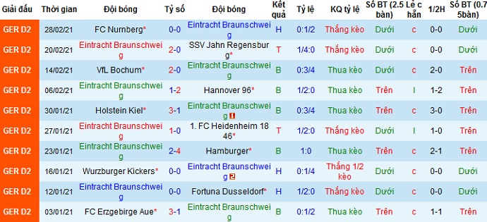 + Thống kê 10 trận gần nhất của Braunschweig