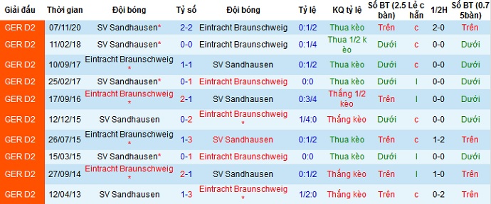 Thế nhưng trong 6 lần đối đầu gần nhất, chính Eintracht Braunschweig mới là đội chiếm ưu thế khi thắng 3 và hòa 3 trận. Cộng thêm với phong độ du đấu kém cỏi của Sandhausen nên chọn cửa dưới ở trận đấu này là điều hoàn toàn hợp lý.