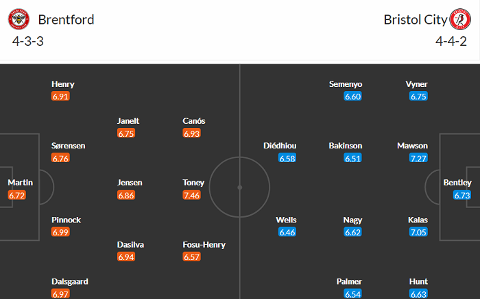Đội hình dự kiến Brentford vs Bristol