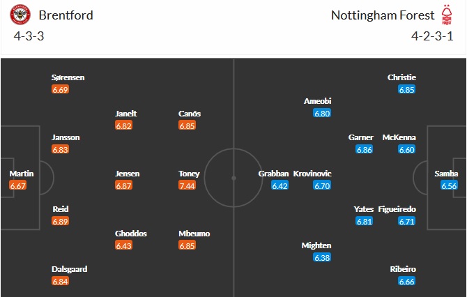 Đội hình dự kiến Brentford vs Nottingham Forest