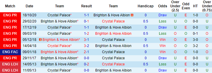 Tỷ lệ kèo Brighton vs Crystal Palace