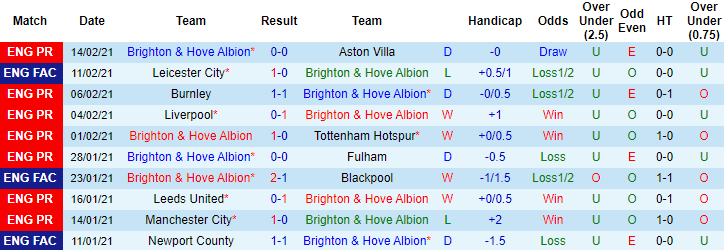 + Soi tỷ lệ kèo tài xỉu: Cả 7 trận gần đây của đội cửa trên Brighton tại giải Ngoại hạng Anh đều khép lại với chỉ tối đa 2 bàn/trận. 3 trận đối đầu gần nhất giữa hai đội cũng kết thúc mà không thể vượt mốc 2,5 bàn thắng. Chọn: Xỉu.