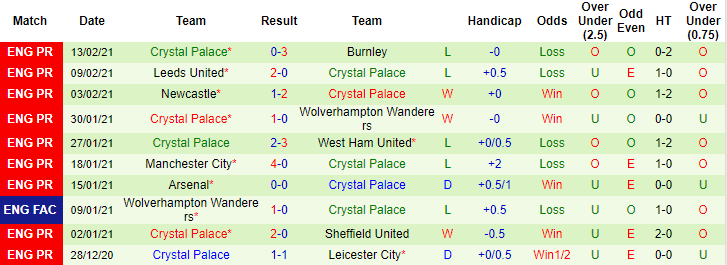 + Thống kê 10 trận gần nhất của Crystal Palace