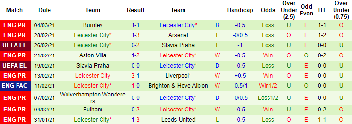 + Thống kê 10 trận gần nhất của Leicester