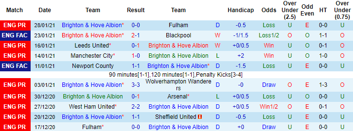 + Thống kê 10 trận gần nhất của Brighton