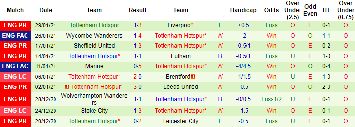 + Thống kê 10 trận gần nhất của Tottenham