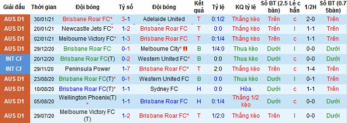 Tuy nhiên cả hai lần gặp nhau gần đây nhất, Brisbane Roar đều giành chiến thắng cho dù phải thi đấu trên sân khách. Bởi thế với phong độ đang khá tốt của đội chủ nhà, hoàn toàn có cơ sở để chọn cửa trên ở trận đấu này.
