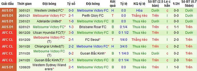 + Thống kê 10 trận gần nhất của Melbourne Victory