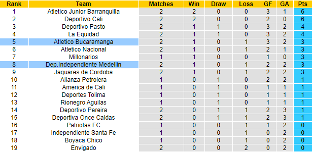 Independiente Medellin toàn thua cả 2 trận sân khách gần đây tại giải VĐQG Colombia. Trận đấu sắp tới cùng với việc phải làm khách, Independiente Medellin còn gặp bất lợi về lịch thi đấu. Theo đó, Independiente Medellin có ít hơn Bucaramanga 3 ngày nghỉ để chuẩn bị cho trận đấu sắp tới.