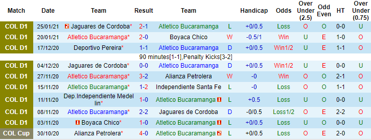 + Thống kê 10 trận gần nhất của Bucaramanga