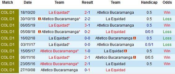 Trên sàn giao dịch xuất hiện chỉ số chính ở mức 0:0 là chi tiết đáng ngại với Bucaramanga. Đây là lần đầu tiên trong lịch sử chứng kiến đội chủ nhà không được làm cửa trên một cách rõ rệt trong các lần đối đầu với La Equidad.
