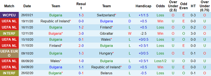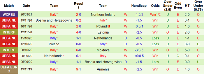 Dưới sự dẫn dắt của HLV Roberto Mancini, Italia có vẻ ‘thích’ các chiến thắng với tỷ số 2-0. 3 chiến thắng gần nhất của họ đều xuất hiện tỷ số này. Với Italia việc chấp Bulgaria với tỷ lệ 2:0, khả năng cao là hai đội sẽ hòa kèo.