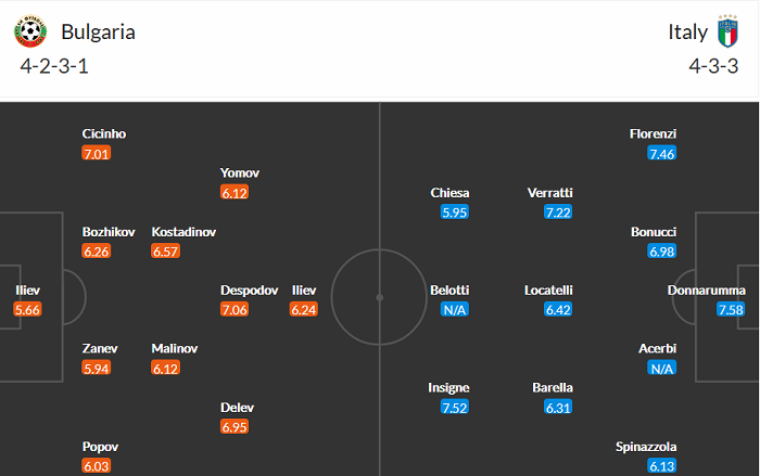 Với chất lượng cùng sự ổn định của Italia dưới sự dẫn dắt của HLV Roberto Mancini, khả năng ‘trả bớt nợ’ của Bulgaria gần như bằng con số 0. Chiến thắng với tỷ số 2-0 trước Bắc Ireland đã là trận bất bại thứ 23 liên tiếp của Azzurri trên mọi đấu trường.