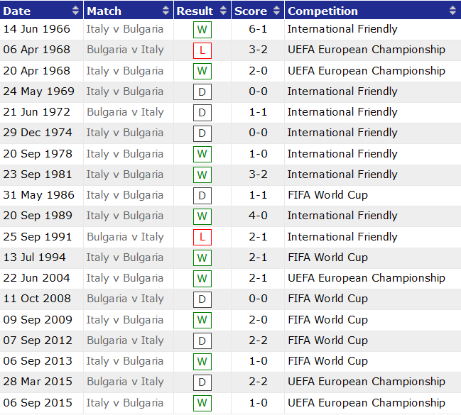Phong độ và thống kê đối đầu Bulgaria - Italia