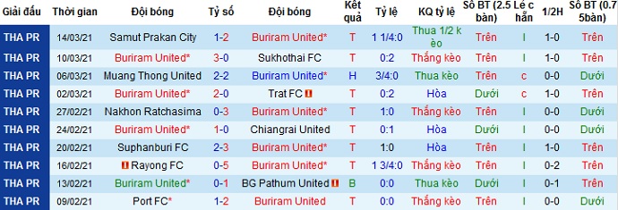 + Thống kê 10 trận gần nhất của Buriram United
