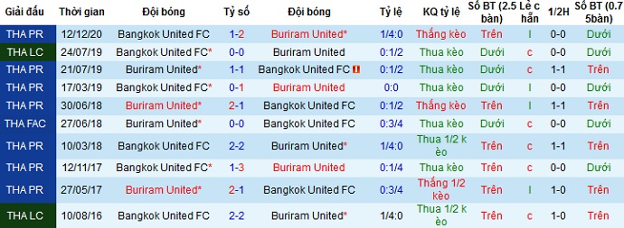 + Lịch sử đối đầu Buriram United vs Bangkok United