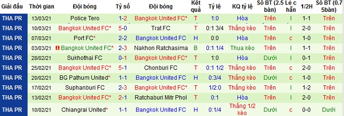 Ở 5 trận gần nhất Bangkok United chỉ thắng 3, hòa 1 và để thua 1. Trên sân khách đội bóng cũng đang bất bại ở 7 lần du đấu gần nhất với 4 trận thắng và 3 trận hòa.