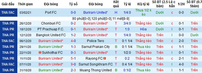 Tuy nhiên phong độ gần đây của Buriram United lại rất tốt khi đội bóng đang toàn thắng ở 5 trận gần nhất, bao gồm cả các trận đấu tại FA Cup. Nếu chỉ tính riêng tại Thai League, Buriram United cũng đang thắng 4 và để thua 1 trong 5 vòng đấu gần đây.