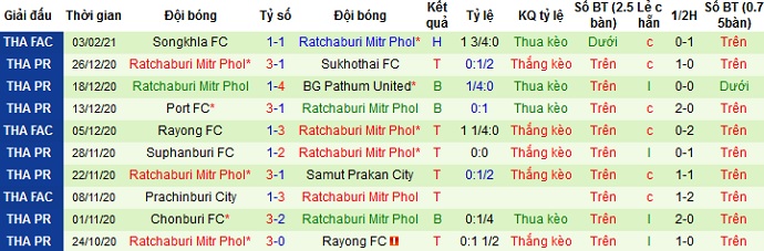 Thành tích của Ratchaburi cũng không đến nỗi quá tệ với 3 trận thắng, 2 trận thua trong 5 trận gần nhất bao gồm cả các trận đấu tại Fa Cup. Điều đáng nói là cả 2 trận thua của Ratchaburi đều trước 2 đội đang dẫn đầu bảng xếp hạng. Ngay cả trên sân khách Ratchaburi cũng đang thắng 4, chỉ để thua 1 trong 5 lần du đấu gần nhất.