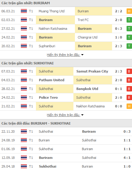 Phong độ và thống kê đối đầu gần đây Buriram vs Sukhothai: