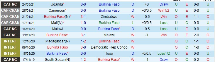 + Thống kê 10 trận gần nhất của Burkina Faso