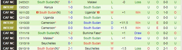 + Thống kê 10 trận gần nhất của Nam Sudan
