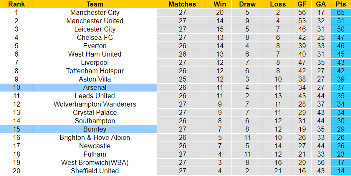 Thứ hai, kể từ khi trở lại Premier League, Burnley thường không có được kết quả tốt khi tiếp đón Arsenal. Họ không thắng và thậm chí thua tới 3/4 lần so tài với Pháo thủ tại sân Turf Moor.