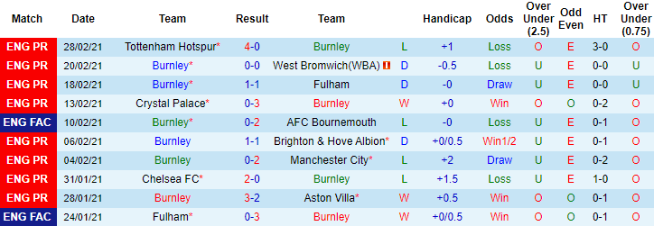 + Thống kê 10 trận gần nhất của Burnley