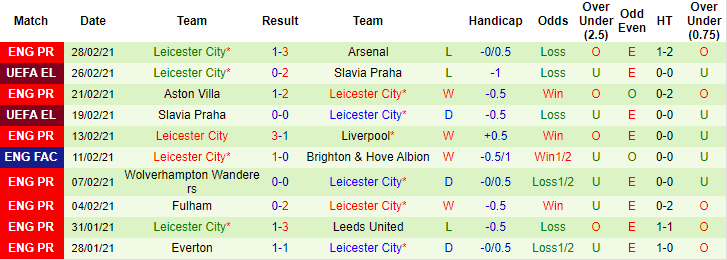 + Thống kê 10 trận gần nhất của Leicester