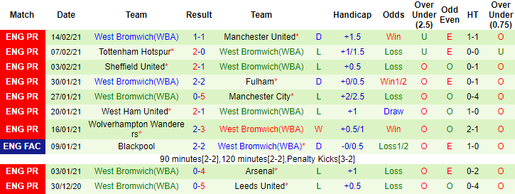 + Thống kê 10 trận gần nhất của West Brom