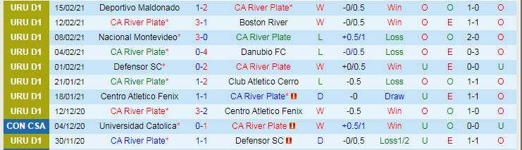 + Thống kê 10 trận gần nhất của CA River Plate