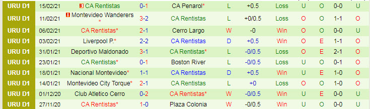 Trong khi đó, đội khách Rentistas bước vào trận đấu đêm nay với phong độ nghèo nàn khi thua 2 trận vừa rồi. Tính tại lượt về, Rentistas thắng duy nhất 1 trận, hòa 2 và nhận tới 4 thất bại sau 7 vòng đã đá.