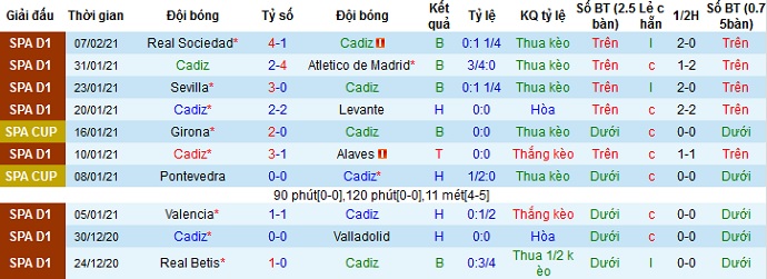 + Soi tỷ lệ kèo châu Á: Mặc dù được thi đấu trên sân nhà nhưng Cádiz vẫn bị đánh giá thấp hơn đối thủ vì thành tích khá tệ ở các trận đấu gần đây. Kèo chấp hiện đang dao động rất mạnh giữa +0,25 và +0,5.
