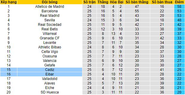 Trải qua 25 vòng đã đấu, thành tích của cả hai đội đều đang khá tương đồng và vẫn chưa thể có được vị trí an toàn cho mục tiêu trụ hạng ở mùa này khi đang lần lượt đứng ở các vị trí thứ 15 và 16 trên bảng tổng sắp, trong số đó Cadiz đang xếp trên đối thủ 3 điểm.
